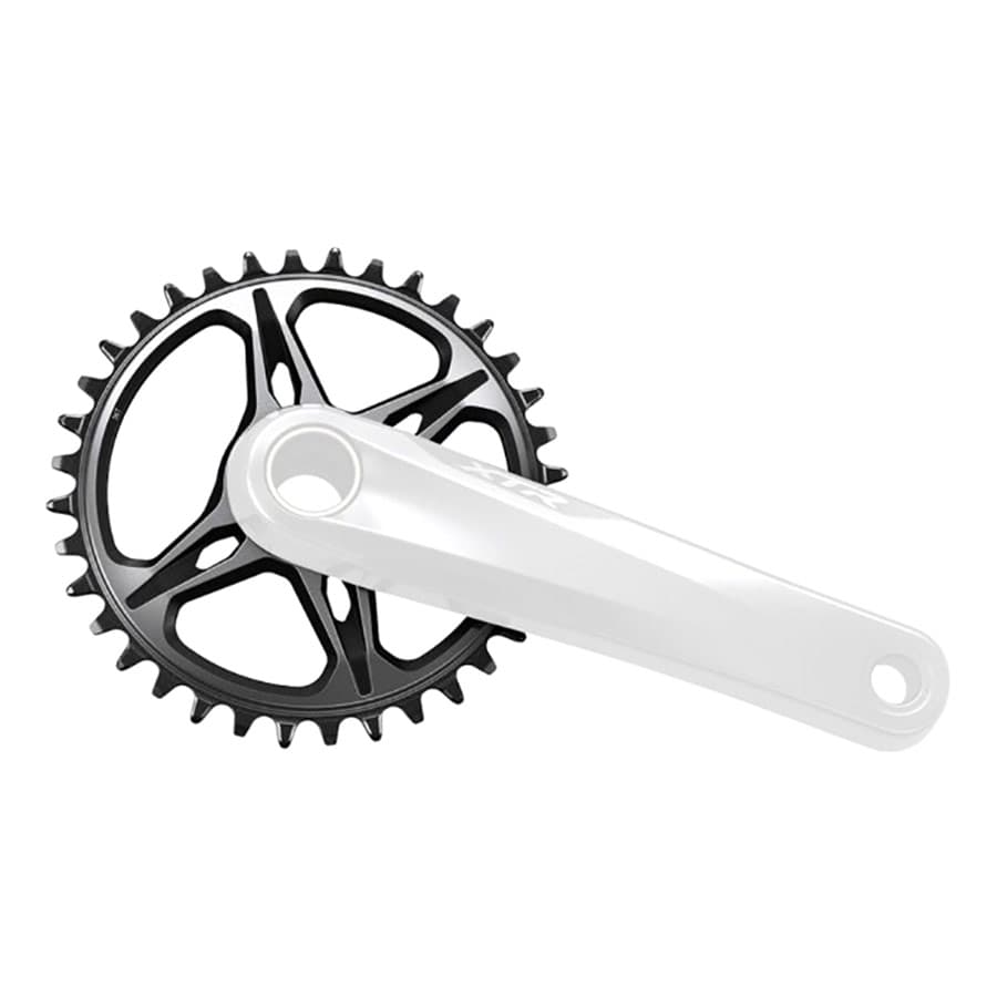 O prato Shimano XTR M9100 é mais leve e rígido, facilmente intercambiável graças à montagem direta e com apenas uma chaveta.